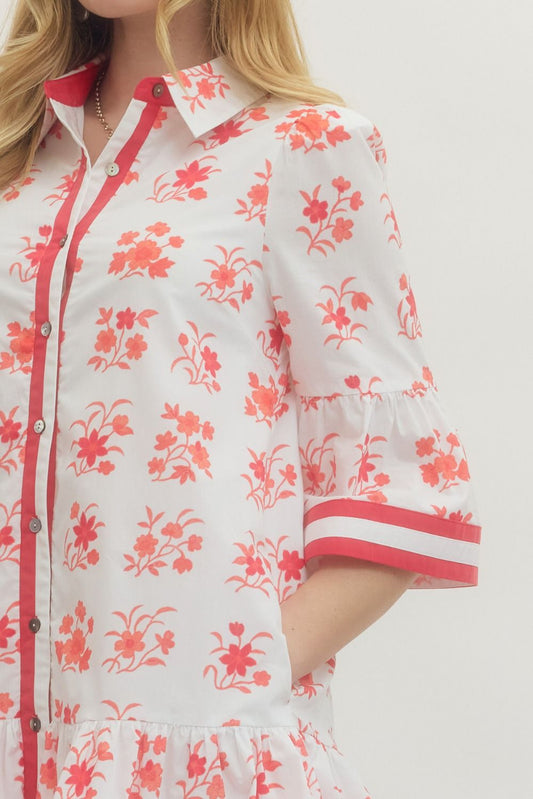QUILTED FLORAL BUTTON DOWN PUFFER JACKET