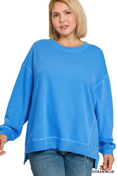 Plus Acid Washed Double Ribbed Hi-Low Pullover