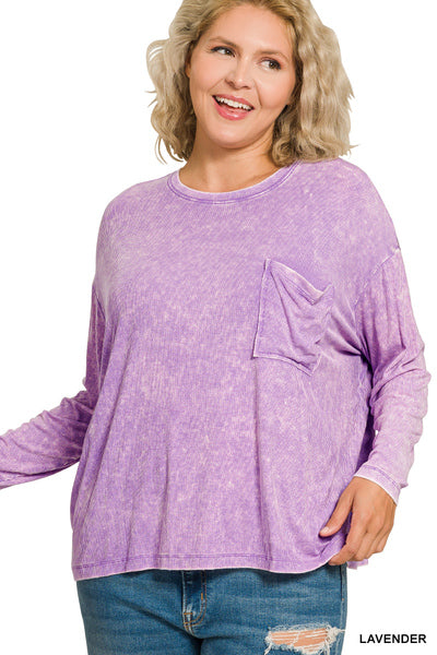 Plus Acid Washed Double Ribbed Exposed-Seam Pullover