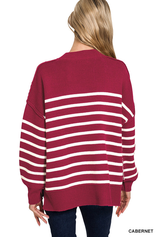 Exposed Seam Striped Oversized Sweater - Cabernet