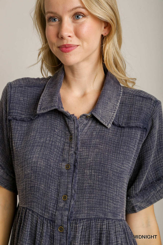Textured Stripe Pattern Tiered Dress w/Ruffle Flutter Sleeve-Pine