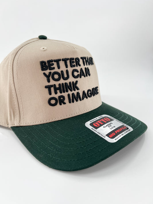 Better Than You Can Think or Imagine- Embroidered Hat Tan/Green