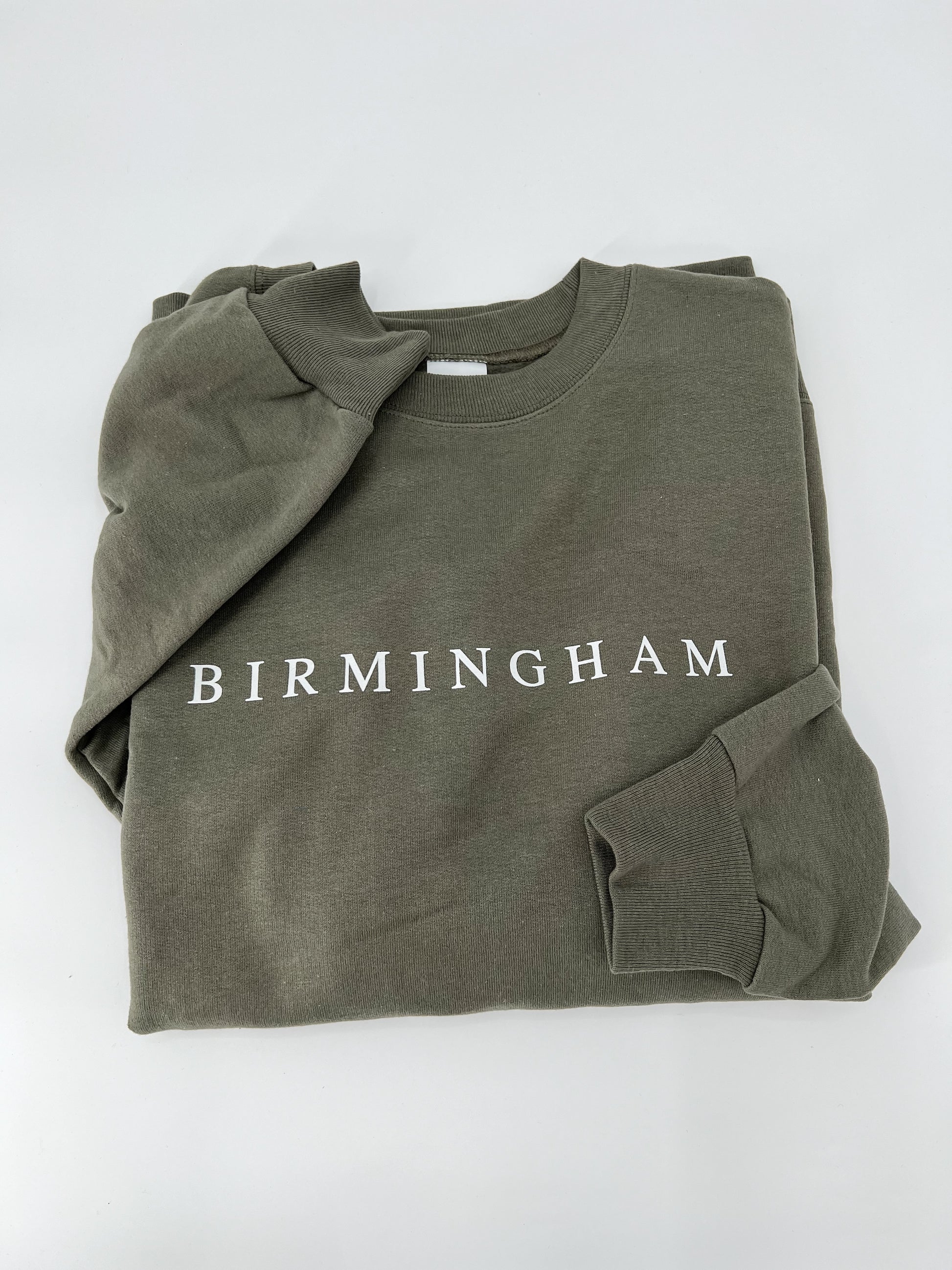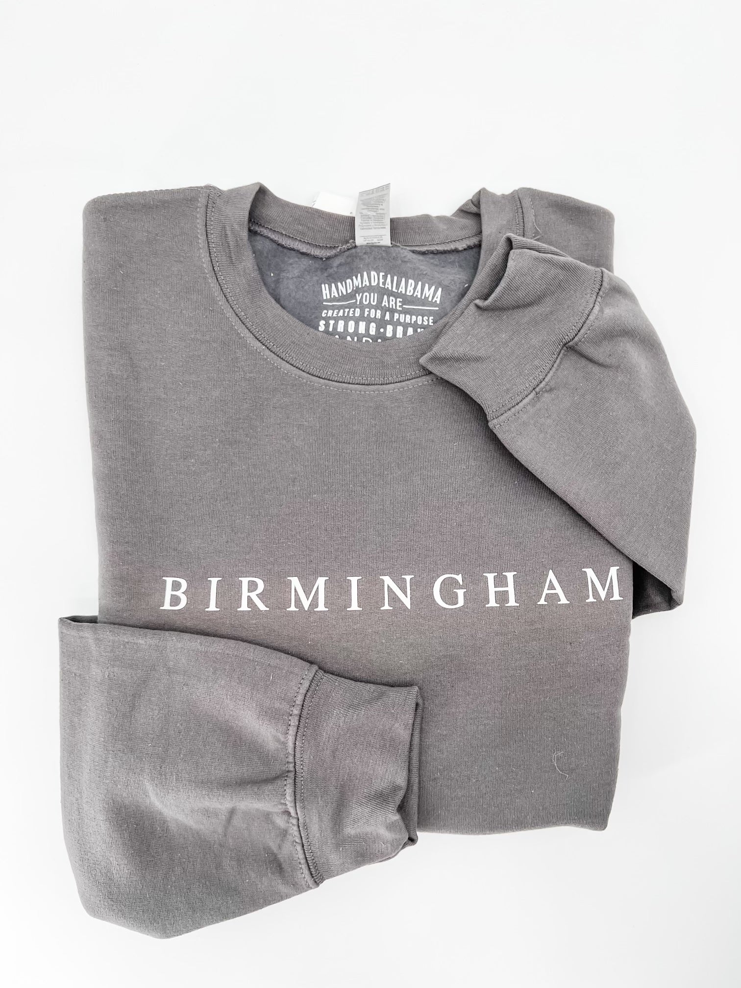 This sweatshirt showcases BIrmingham in a Seaside font. Perfect for locals, tourists, or those with connections to Birmingham. Available in other colors upon request.