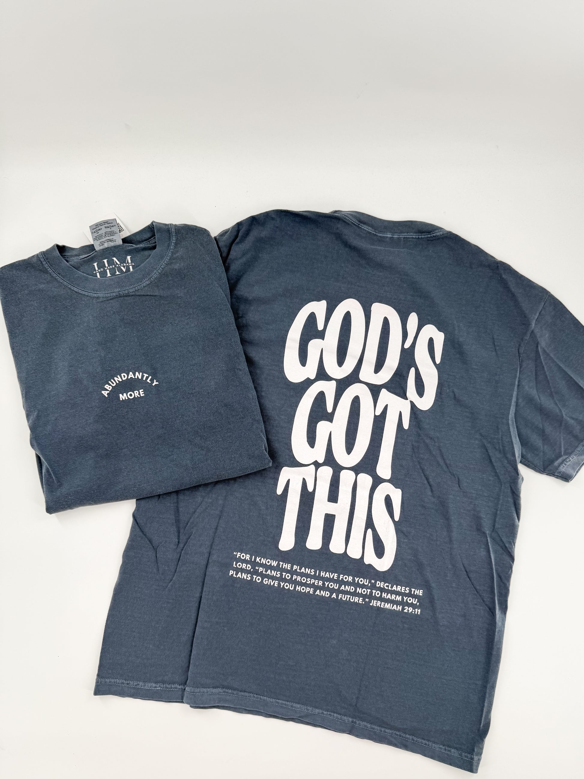 The Back design "God's Got This" - references Jeremiah 29:11.