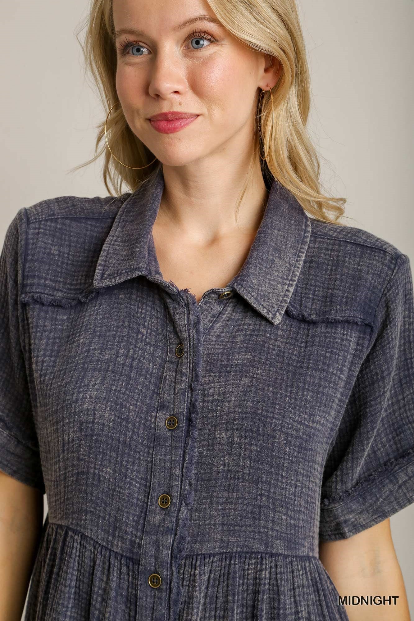 Brighten your wardrobe with this cute dress! Made from 100% cotton, this playful dress features a button-down front, a cute short collar, and a fun frayed unfinished hem for a touch of casual charm. Lightweight and breathable, it’s perfect for sunny days when you want to feel comfy and effortlessly stylish.
