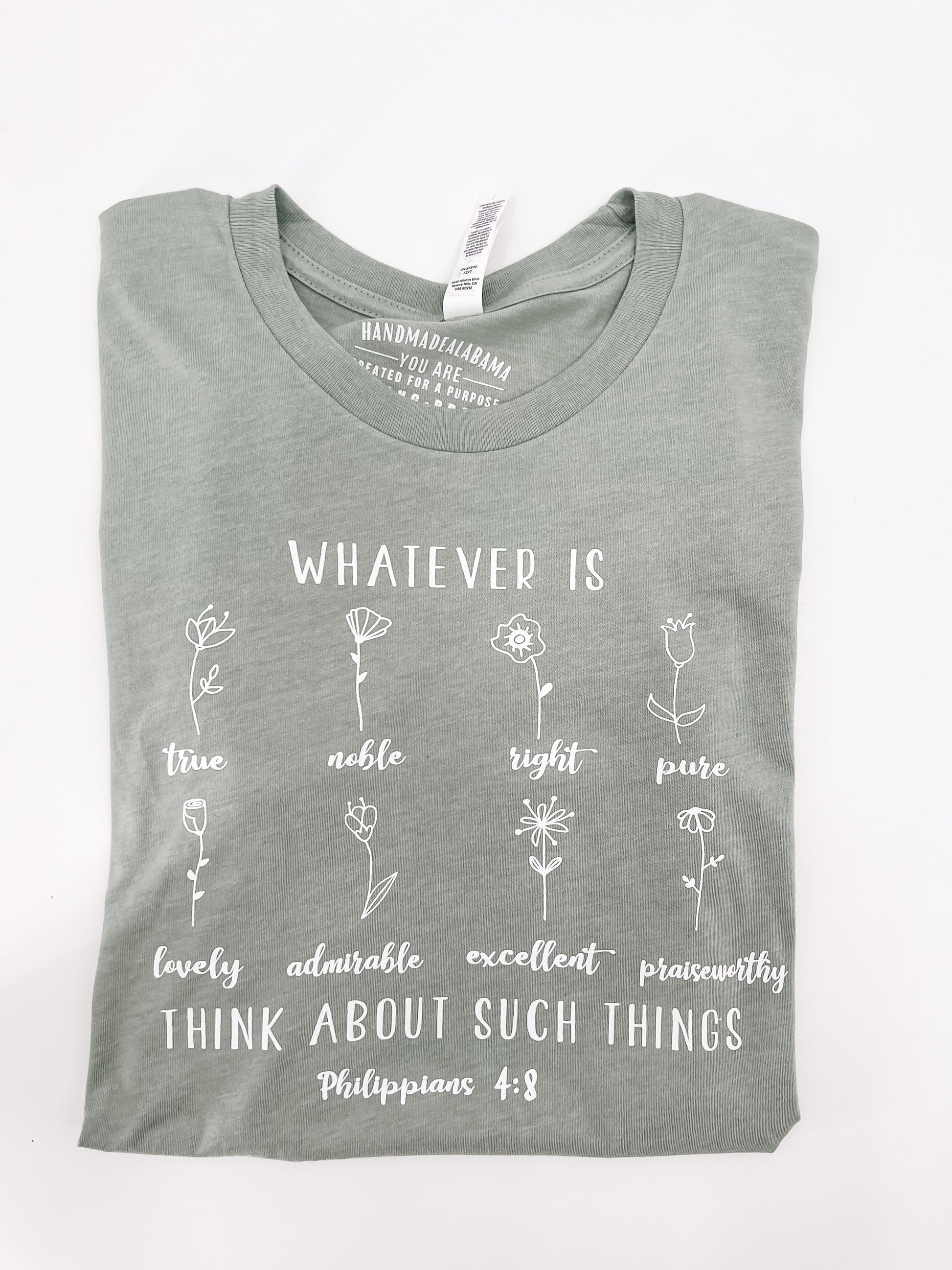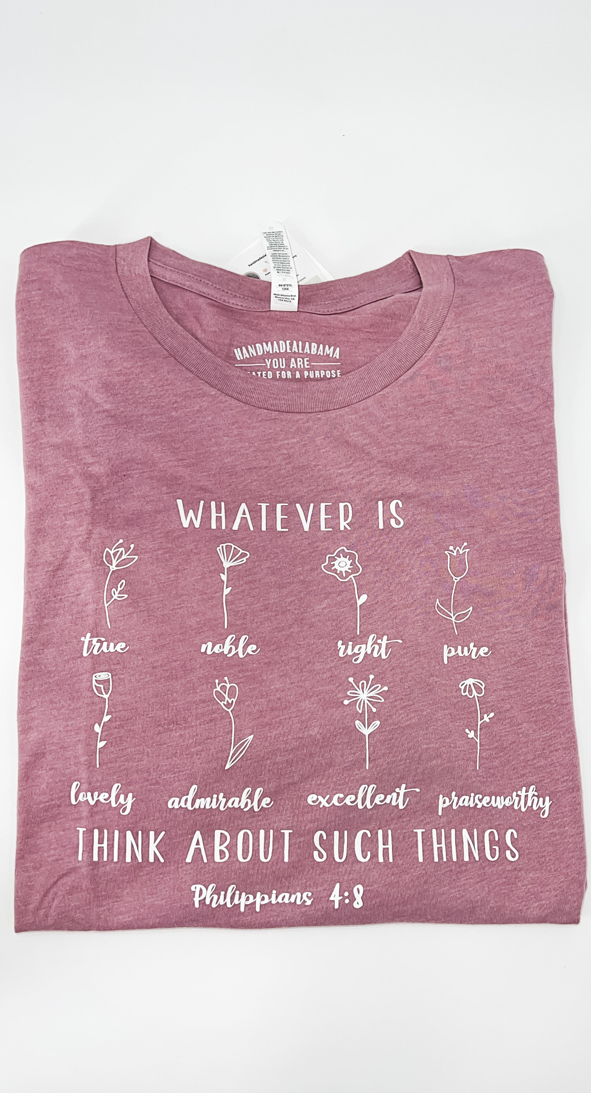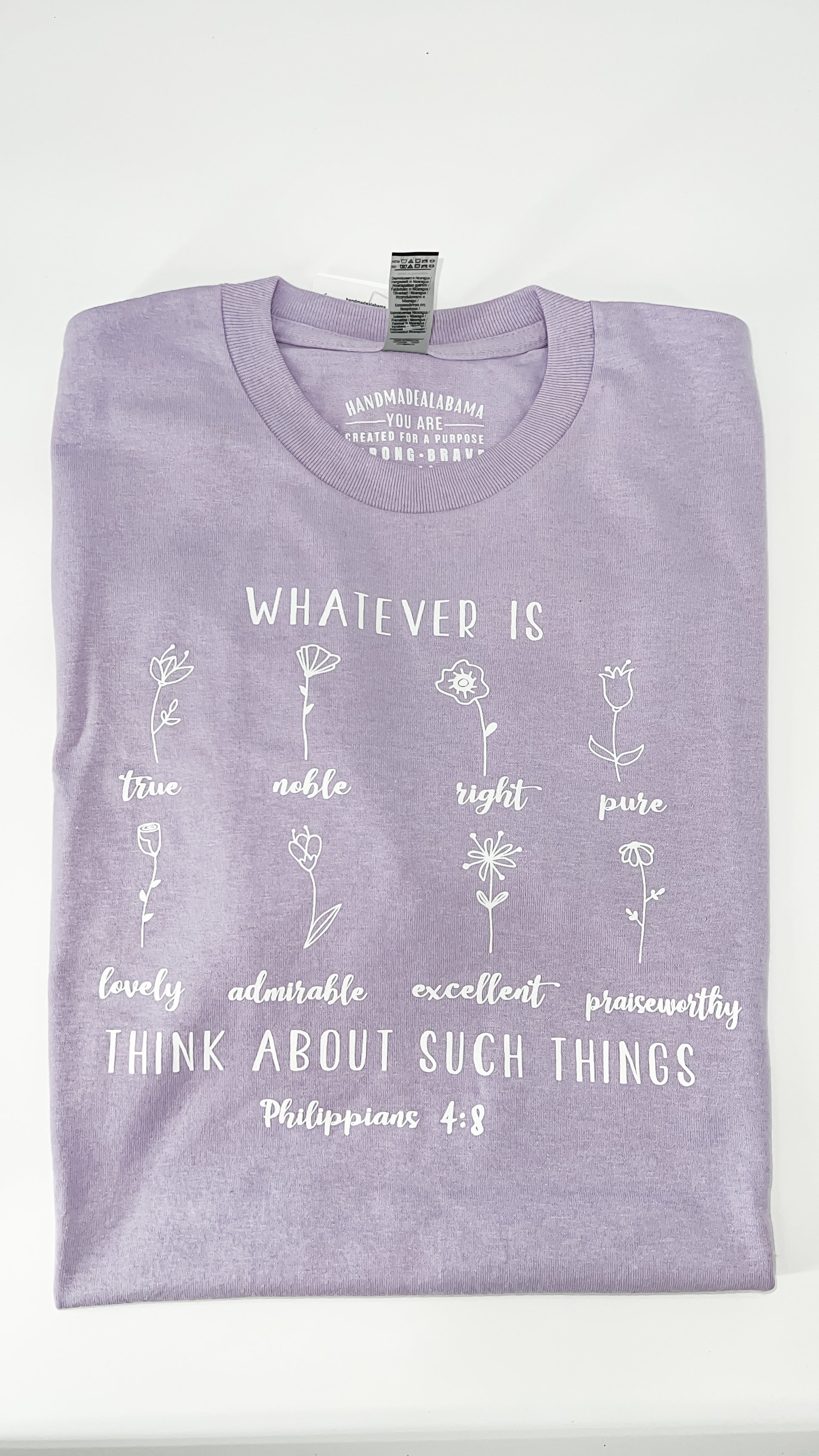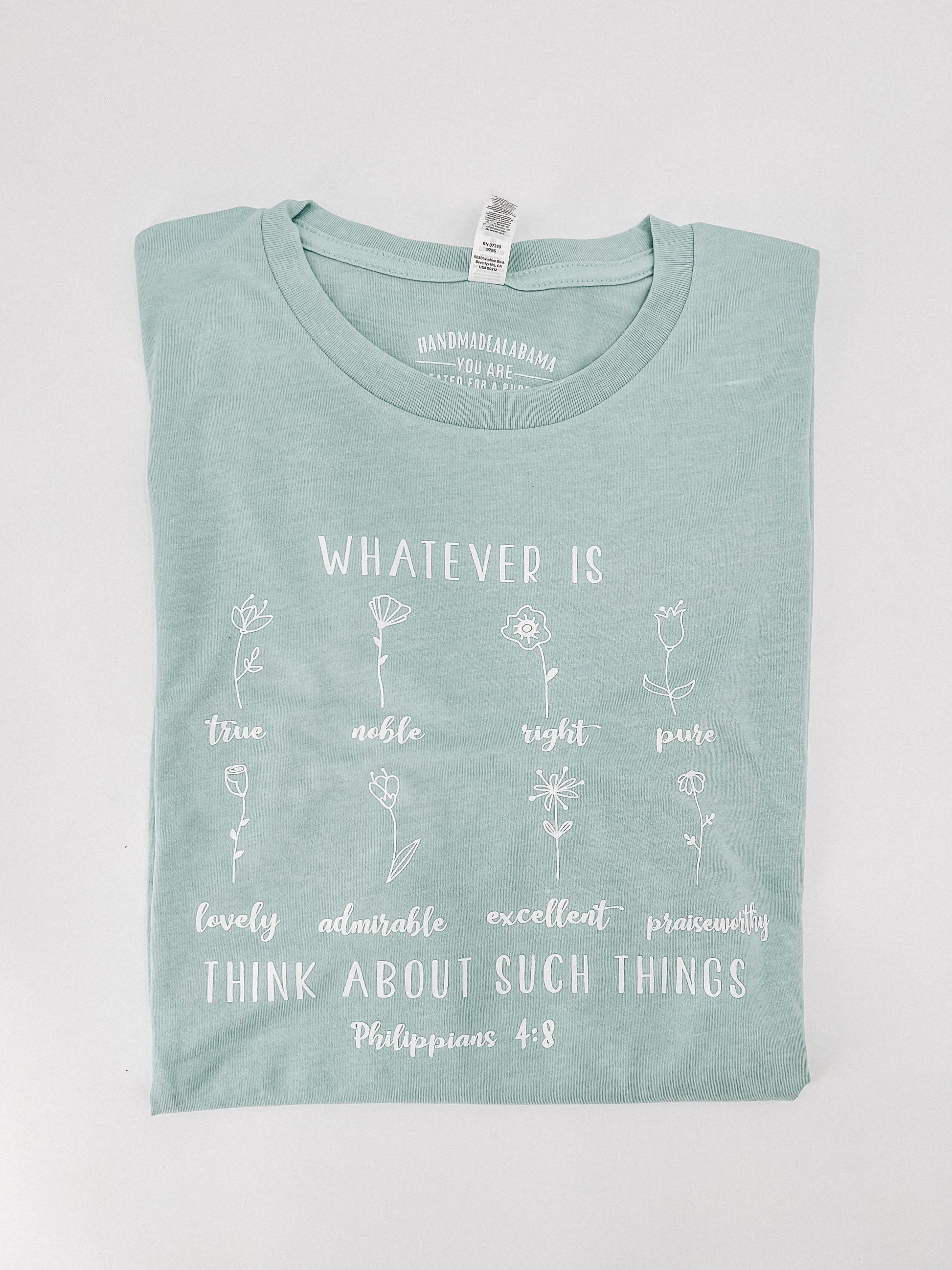 "Fix your thoughts on what is true, and honorable, and right, and pure, and lovely, and admirable. Think about things that are excellent and worth of praise." Phillipians 4:8